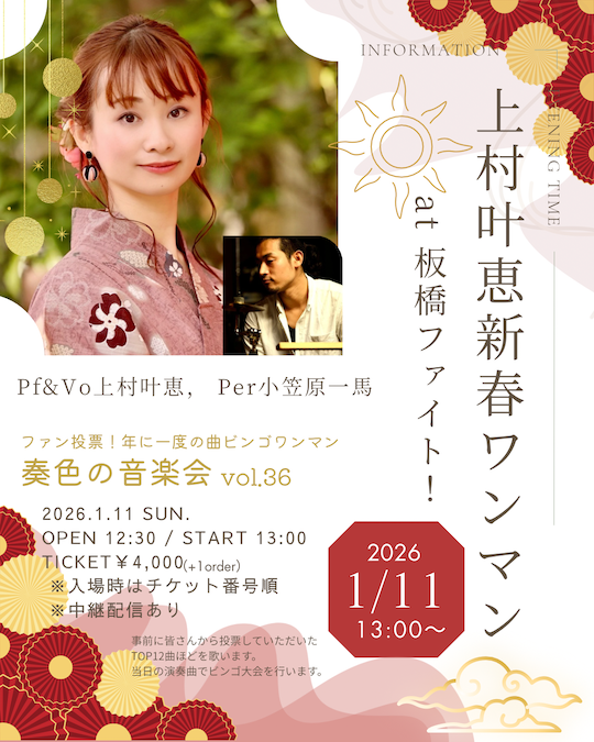 上村叶恵新春ワンマンライブ「奏色の音楽会vol.36 -リクエストでビンゴ大会- 」